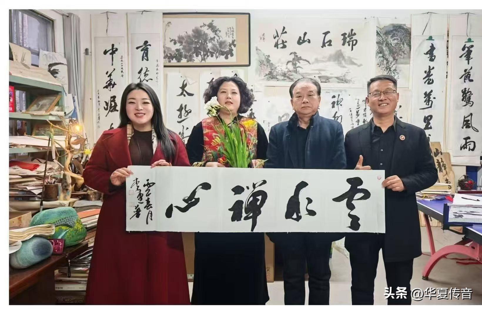 在授牌仪式上,李建华院士为翕家大院酒董事长李俊、总经理张灵赠送了书法作品“马到成功”“云水禅心”等,以示对翕家大院酒公益事业的肯定和鼓励。